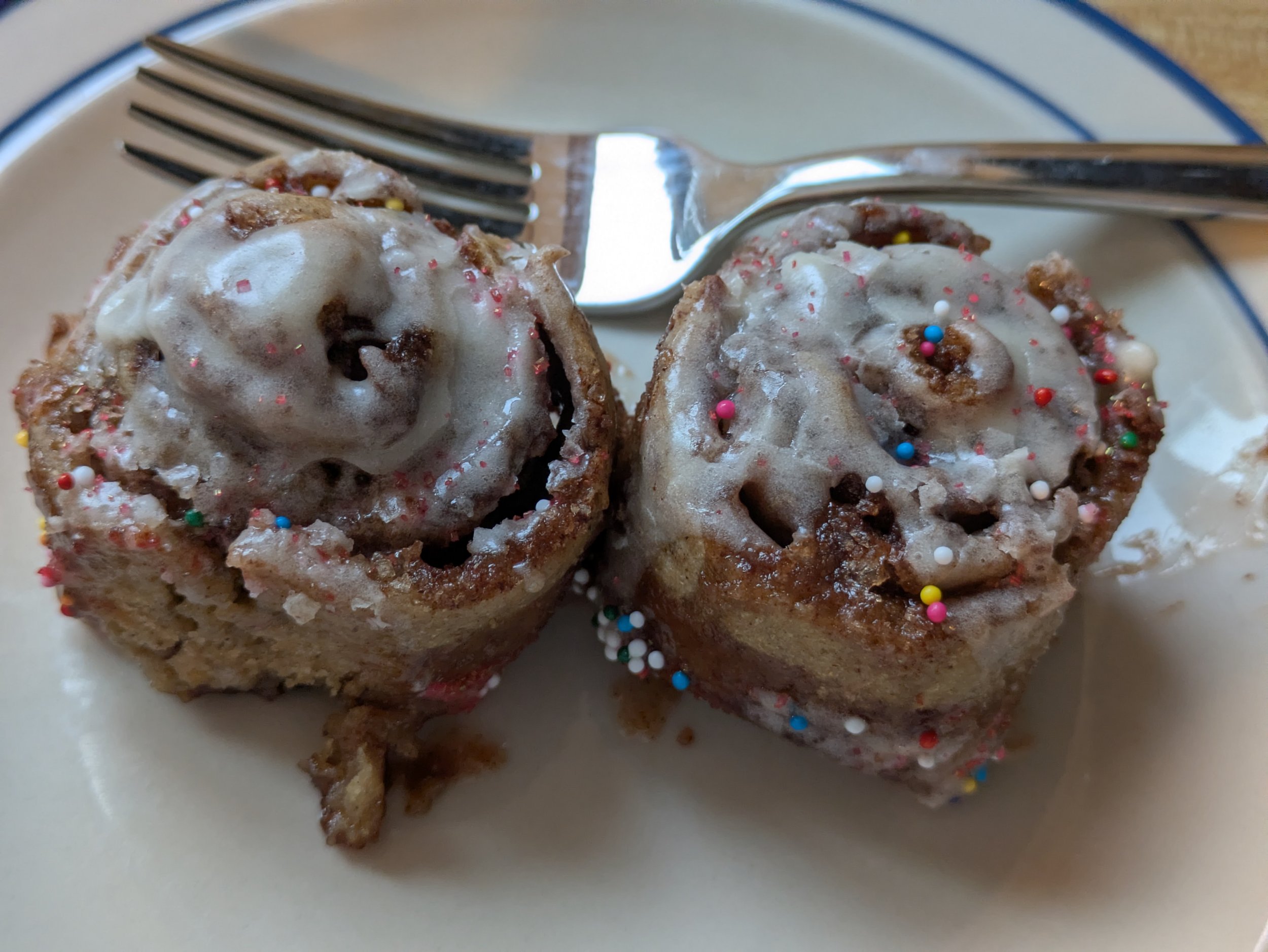 Bekah got up this morning and yelled, “No (snow), Mommy! ‘No!” We quickly agreed that today we should make cinnamon rolls :)